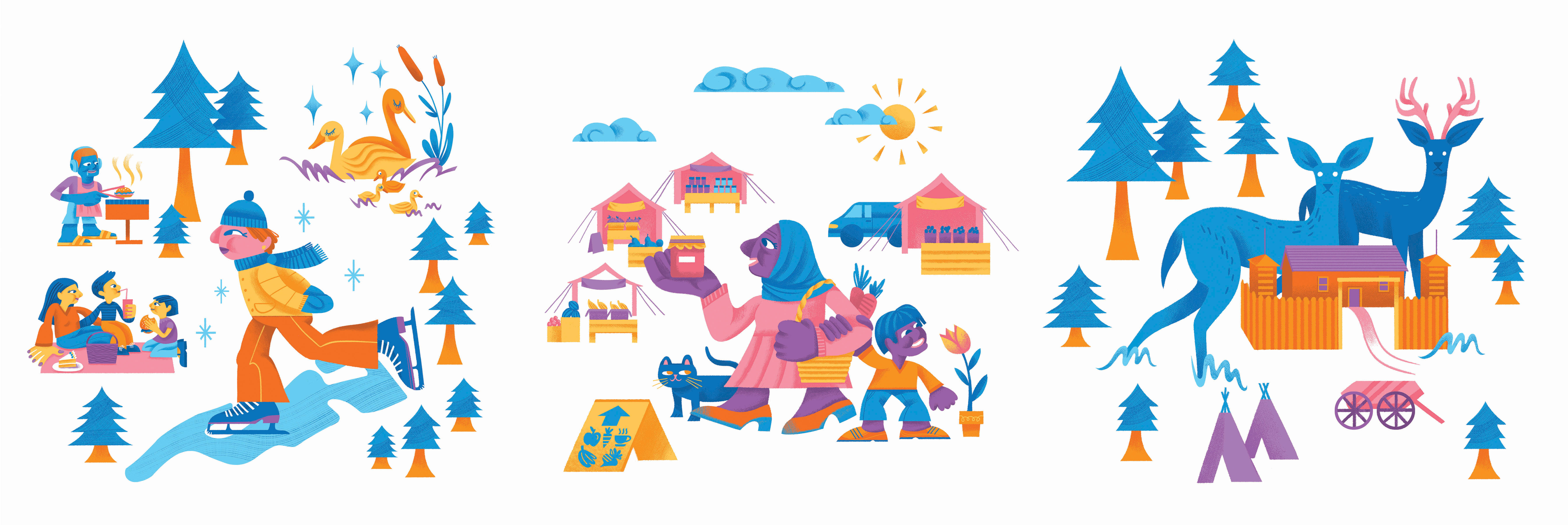 2-panel mural for the Red Deer ATB Branch, capturing a growing and vibrant city.